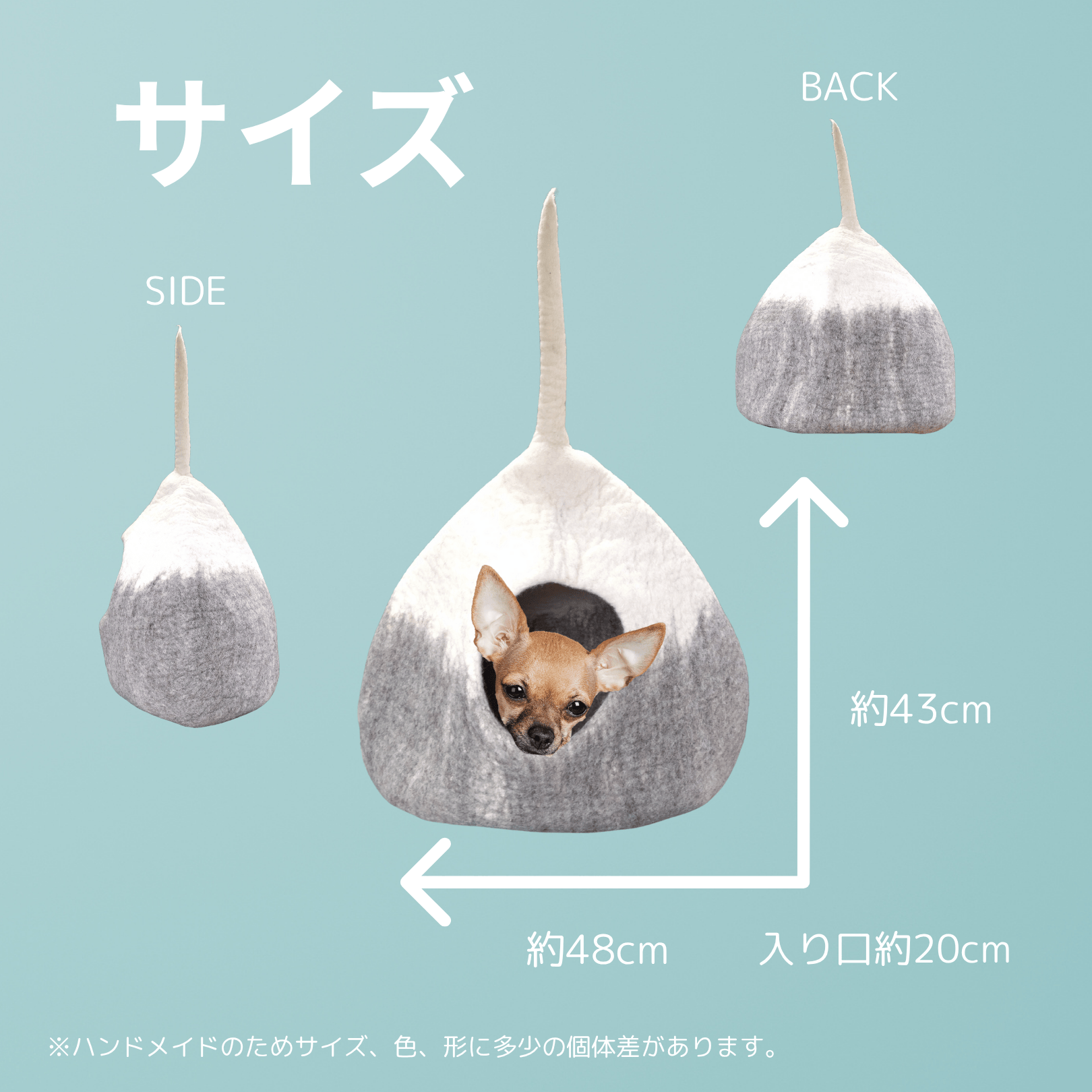ネパール発の室内用ペットハウスです。ニュージーランド産ウール、オーガニックソープ、そして水のみでの自然製法(全て手作業)。わんちゃん、猫ちゃんも安心安全。齧っても舐めても大丈夫です。インテリアに馴染む可愛いデザインと自然製法で様々な国で人気が急上昇しています。折りたためるのでコンパクトに収納できます。